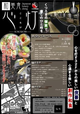 10/1大阪駅前第三ビル32F 130mの夜景と和の創作料理 【心灯~こころび~】がNEW OPEN