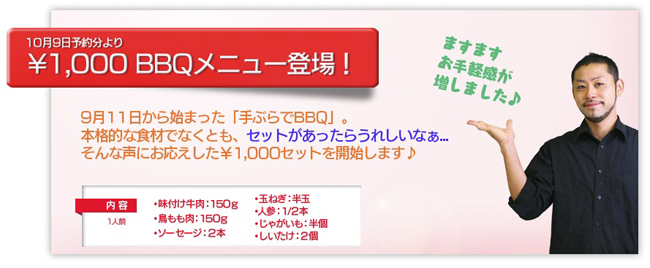 横浜手ぶらBBQバーベキュープランに¥1,000セット登場