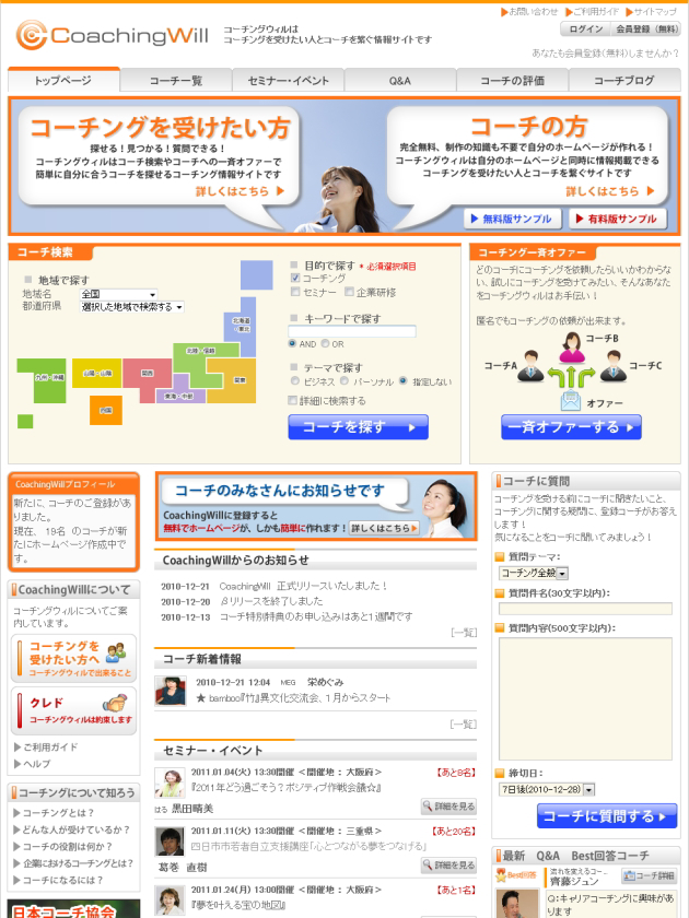 コーチを簡単に探せて、申し込みができる。コーチングポータルサイト「コーチングウィル」誕生 ― http://www.coachingwill.jp/