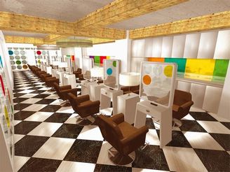 ヘアサロンはもちろん、ネイルや関西初上陸のフェイシャルエステサロン「ケラスキン」、メイク・ヘア・ネイルアーティスト養成スクール、レンタルコスチューム、フォトスタジオ、チャペル、ダイニングカフェを備えた計5フロアからなるトータルビューティサロンで、大阪を中心に24店舗ある既存店を上回る大型店となります。