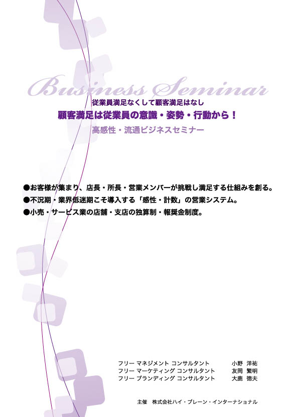 ・『高感性・流通ビジネスセミナー』〝顧客満足は従業員の意識・姿勢・行動から!〟(2011年2月2日~)http://sense-inter.com/mc/bs.pdf