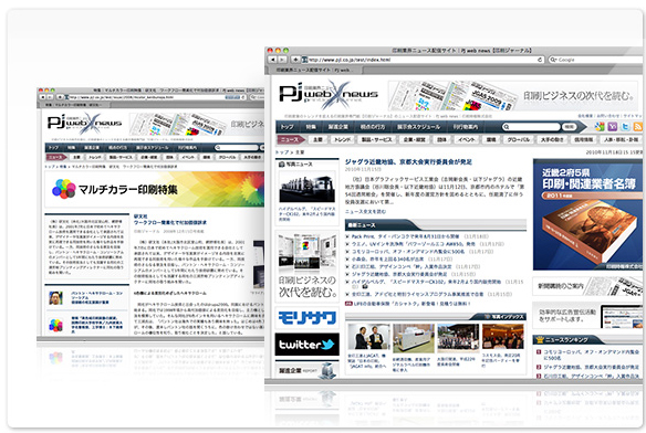 印刷業界新聞社である当社は、2006年から業界ニュースをWeb配信してきましたが、急激に変化する印刷関連分野の技術や経営環境を背景に、さらなる情報量および速報性が求められていました。今回のWebサイトリニューアルでは、ニュースの速報性を向上させるための記事投稿システムを採用するとともに、サイトの構成、デザイン、ソーシャルメディアとの連携など、閲覧性や操作性および機能面で全面的な修正を加え、写真コンテンツの掲載などを含めた情報量アップも図っています。