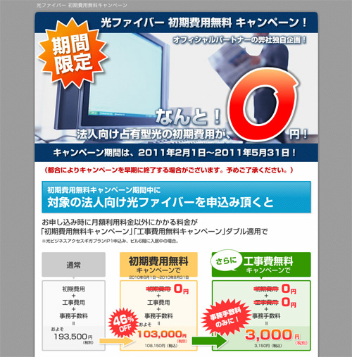 但し、キャンペーン実施期間(2月1日から5月31日まで)と対象サービス(光ビジネスアクセス、光ビジネスアクセス ギガプラン)に限定したキャンペーンとなります。