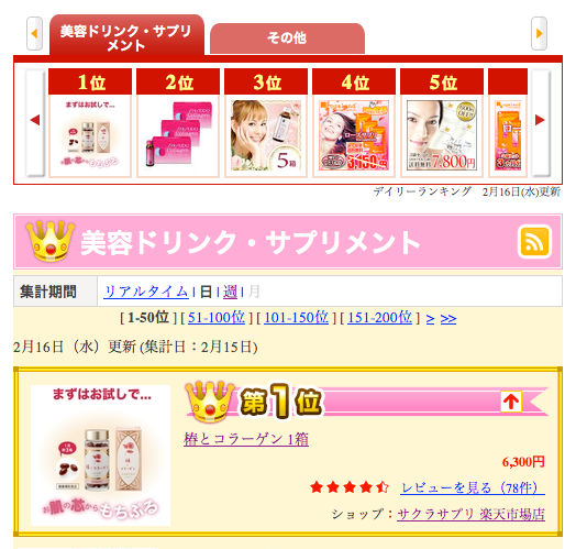 楽天第1位獲得!!上海万博でも話題沸騰!!美容業界大激震!!「椿とコラーゲン」