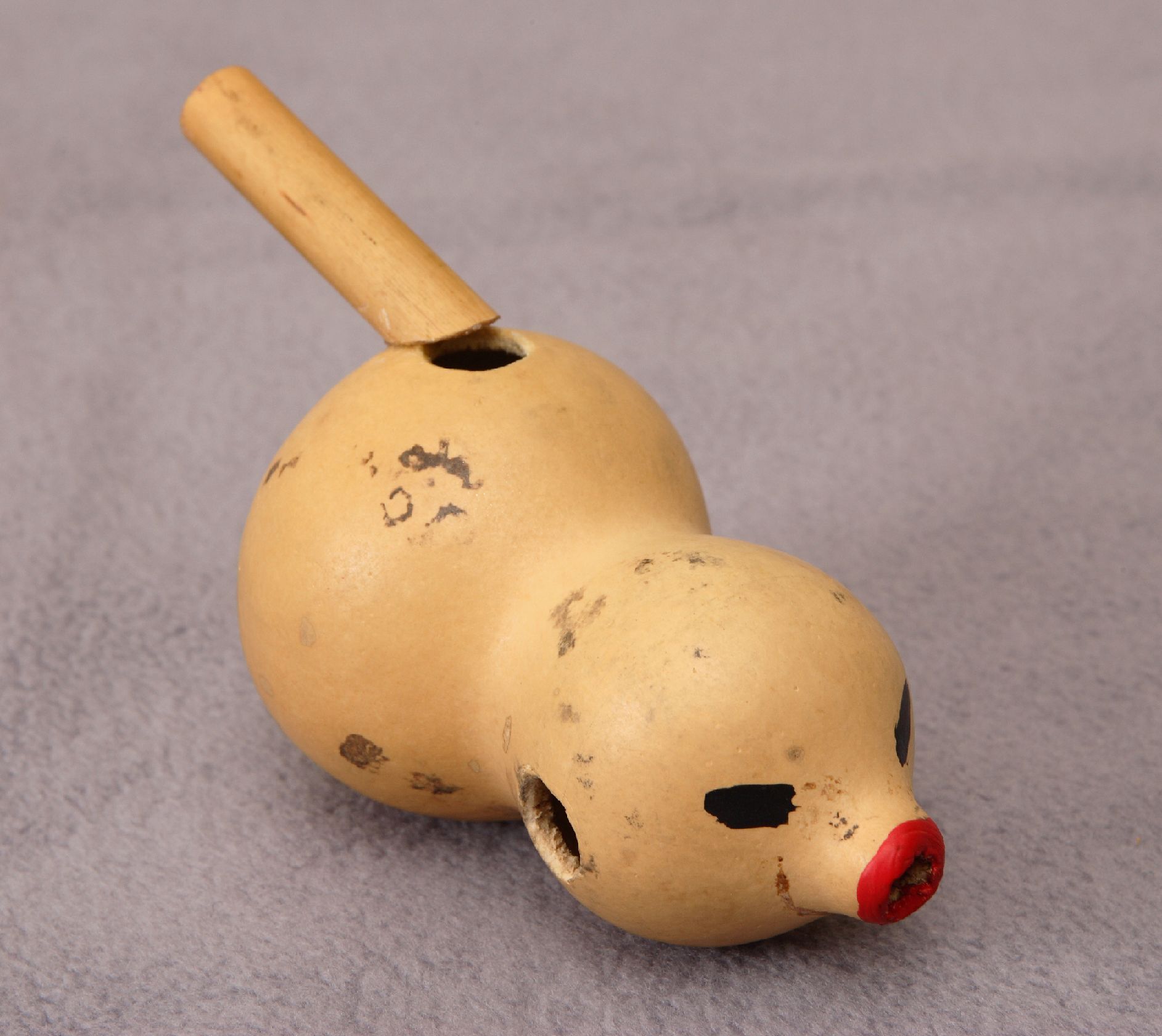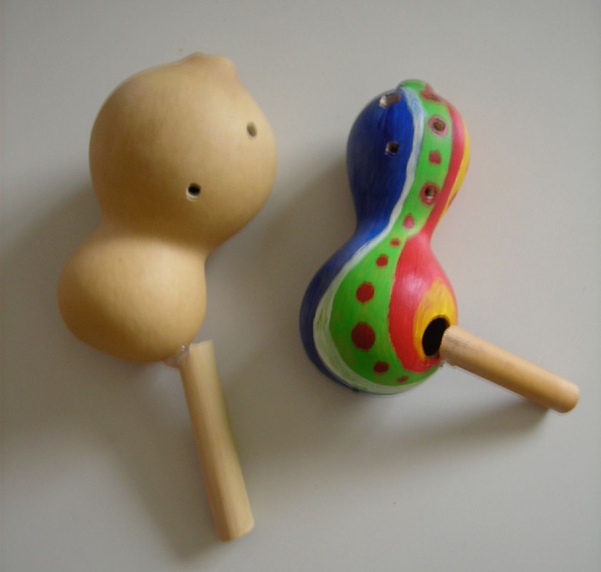 ひょうたん楽器づくりワークショップで作った「ひょうたん笛」を使い、