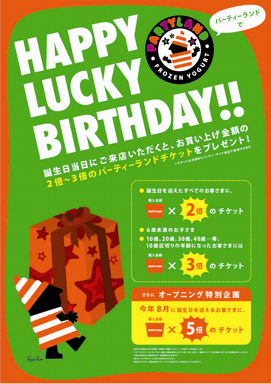 日本で生まれたセルフサービスのフローズンヨーグルト店が難波、沖縄(国際通り、美浜)に3店舗同時オープン。誕生日には、購入金額の2倍~3倍の金券をプレゼントするバースデイ企画が楽しい!~昨年話題になったヨーグルトランドが8月1日、パーティーランドに生まれ変わります~