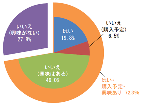 7割以上の方が、スマートフォン購入予定・または関心をもっており、そのうちの既にもっている方が2割いることから、最近のスマートフォン人気を示す結果となりました。スマートフォンの普及率は今後も増加していくことが予想されます。