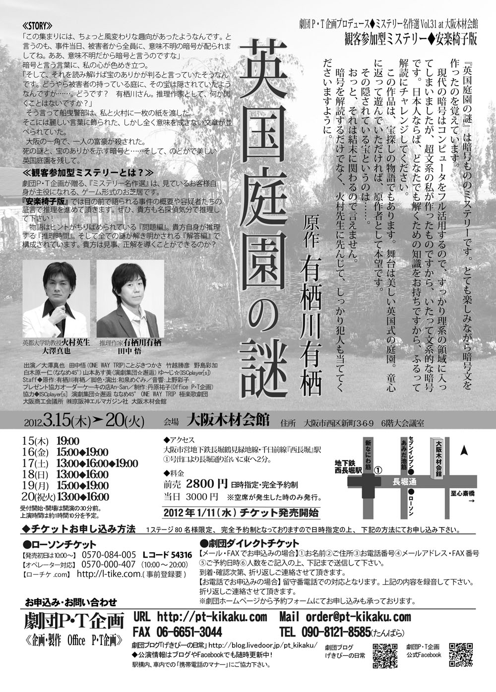 【公演情報】劇団P・T企画プロデュース ミステリー名作選Vol.31 観客参加型ミステリー◆安楽椅子版 有栖川有栖原作『英国庭園の謎』