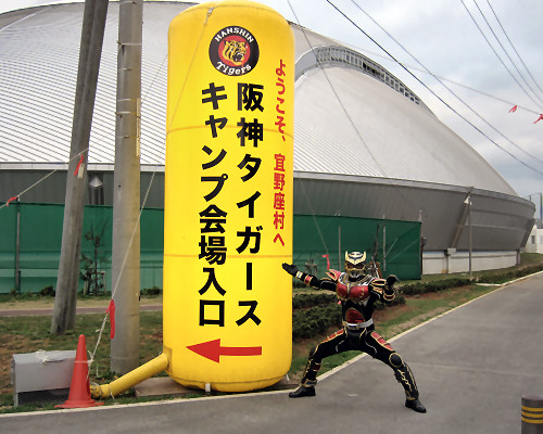 昨年10月にデビューした大阪のご当地ヒーロー「浪速伝説トライオー」が、いよいよ本格始動。“今年の阪神は調子が良さそう!!”と絶賛も。~阪神タイガース沖縄キャンプを視察、沖縄プロレスにも参戦してきました~
