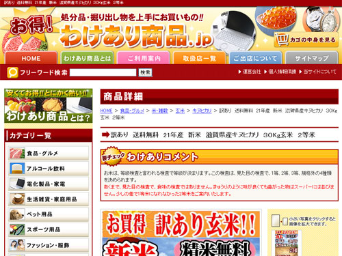 「わけあり商品.jp」は、傷・見た目・大きさの不揃いなどの理由で規格外になった食品や、新商品の発売で型落ちとなった電化製品など、ちょっとの「わけ(訳)」があるだけで、お買い得となっている商品を取り扱う通販サイト。味や品質は変わらないが通常と同様の価格では売れない商品を販売できるので、出品する店舗にとってもメリットがあり、購入するユーザーにとっても規格品と同様の商品を安く買えるお得なサイトとなっている。