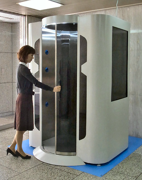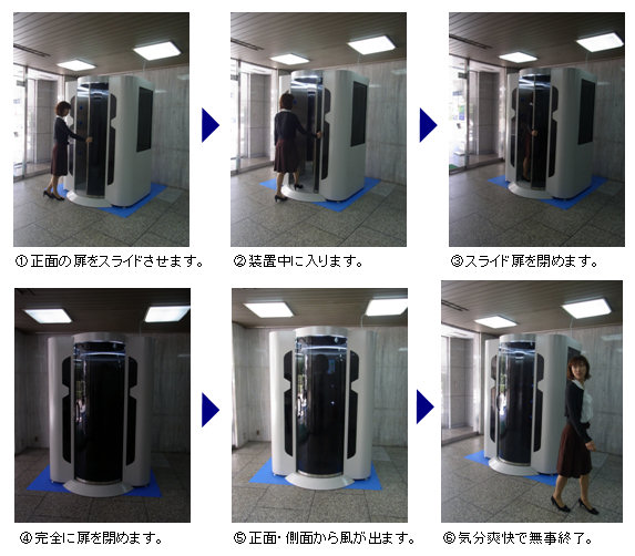 「リフレシャワー」の使い方は非常に簡単。マシンに入り扉を閉め、タッ
