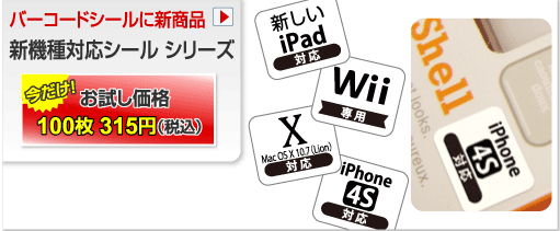 バーコード屋さん 新商品の販売を開始。「新しいipad」対応表示シール。周辺機器・関連商品が新しいipadに対応可能なことを表示するためのシール。今だけお試し価格100枚315円