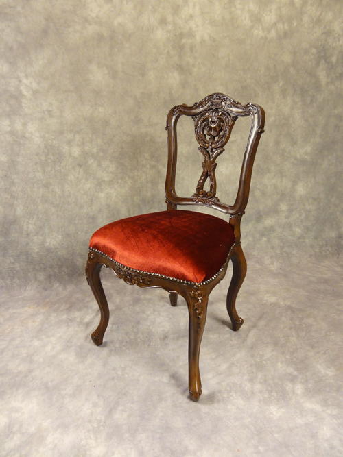 彫刻豊かな木製フレームのイタリアンスタイルダイニングチェアや