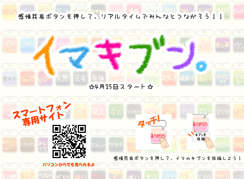 「イマ」の「キブン」をボタンで発信&共有できるスマートフォン用サイト、