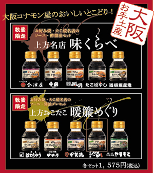 大阪土産の決定版!!大阪お好み焼たこ焼 名店秘伝のソースセットを販売