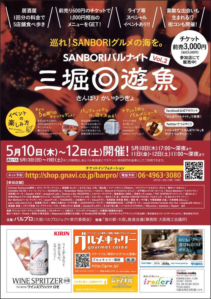 2011年の12/1木・2金・3土に、土佐堀・江戸堀・京町堀の“さんぼり”(肥後橋~靱公園一帯)にて開催したバルイベント「SANBORI