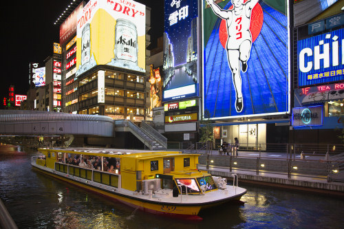 道頓堀川をゆったりと遊覧する観光ミニクルーズ。