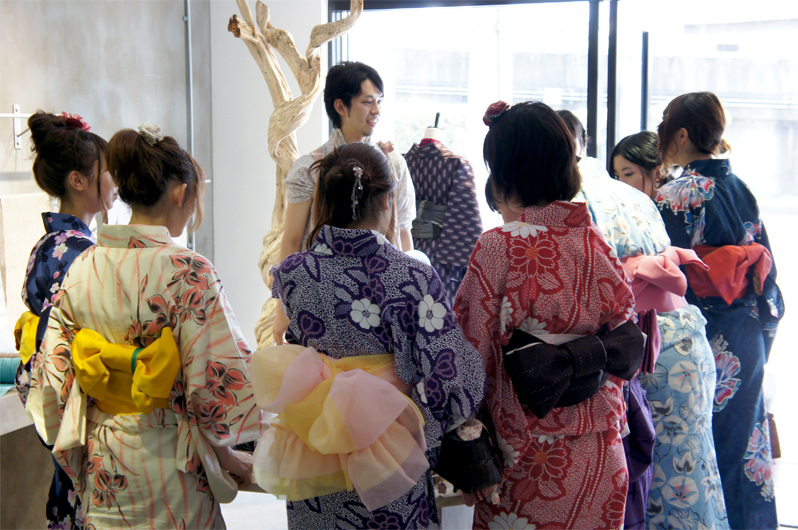 そこで、昨年7月に開催し好評だった「YUKATA party※」の第2弾となる今回は、龍谷大学 大原ゼミの留学生と共同で、留学生や日本人学生、京都や大阪の伝統産業や繊維産業に関わる人々が浴衣姿で集い、留学生と日本人が楽しく交流を持ちながら日本文化に触れることを目的とした「和」文化交流イベントとして企画しました。