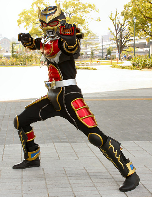 大阪のご当地ヒーロー「浪速伝説トライオー」。