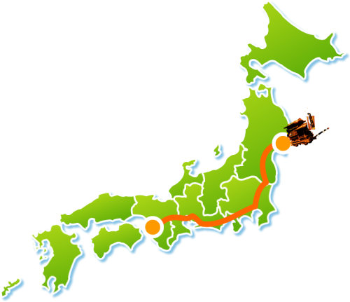 2012年10月20日に岸和田を出発しただんじりは、半年をかけ全国各都市を巡り北上、2013年3月11日に被災地・宮城県石巻市の到着を予定しています。