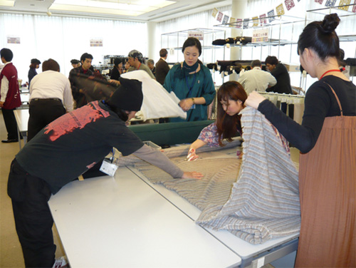 相互の利益のために新たな試みとして産地企業が、小規模デザイナーブランドやファッション専門学生、手芸作家などへの販売が可能な「テキスタイル・マルシェ」が生まれました。