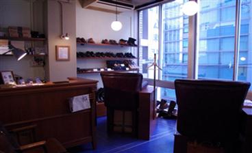 英国風「靴磨き専門店」店内は英国風のインテリアに、BGMにジャズを流すことで大人のリラックス空間を演出しており、従来の靴磨きの暗いイメージを払拭し、明るく、スタイリッシュな造りに致しました。