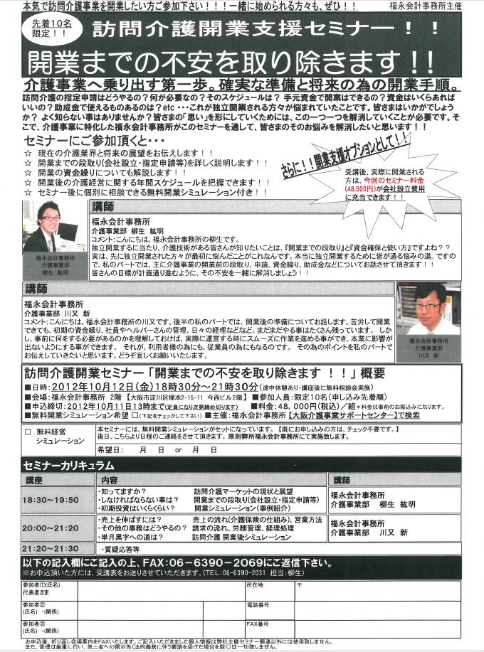 訪問介護事業 開業支援セミナー 開業までの不安を取り除きます!