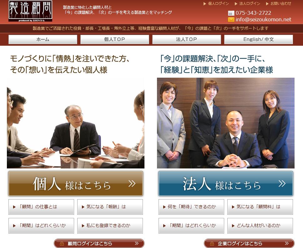 10月1日に製造業に特化した顧問人材のマッチングサービスを本格的にスタート致しました。併せて、「製造顧問専用」のホームページを作成致しました。