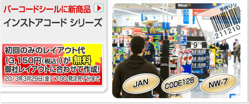 インストアコードシールをJAN、CODE128、NW-7の3コード・豊富なサイズで展開。
