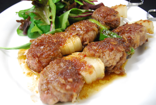 沖縄古来の島和牛とあぐー豚の配合にかなりの時間を費やし、「自信がもてるまで開発を続けた逸品はぜひ皆様に食べて頂きたい」。