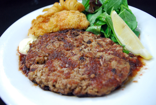 そして出来上がったのが、“オリジナルブランドの琉球島和牛とやんばる島豚あぐーの絶妙比がたまらない”「直挽きハンバーグ」だ。