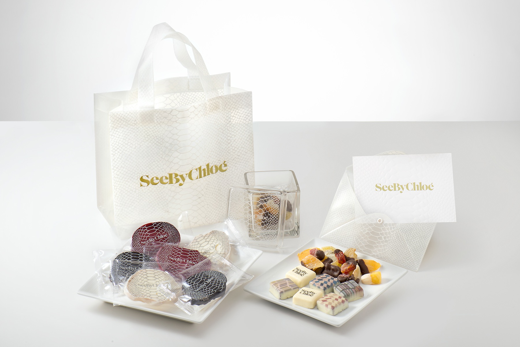 シー バイ クロエ チョコレートショップ&カフェでは、シー バイ クロエチョコレートとオリジナルPVCバックをセットにしたSeeByChloé Assortment Bag(¥3990)や、人気バックシリーズAPRIL Bag をかたどったチョコレート(¥735)、コンパーテス・ショコラティエで人気のトリュフチョコレートにオリジナルプリントをデザインしたSeeByChloé Truffe(3コセット\1500 )などのコレボレーションチョコレートを販売いたします。
