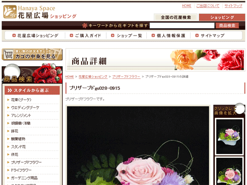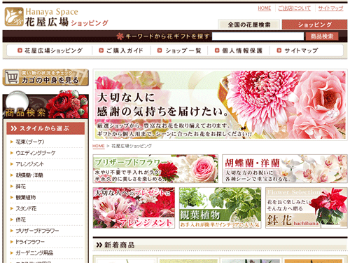「花屋広場ショッピング」は、花屋の検索サイト「花屋広場」のギフト用通販サイトとして公開され、コレにより花屋広場は、近所の花屋を探す人以外にも、ギフトとして花を贈りたい人、こだわりの花をネットで探したい人など様々なニーズに応えられるサイトになっています。