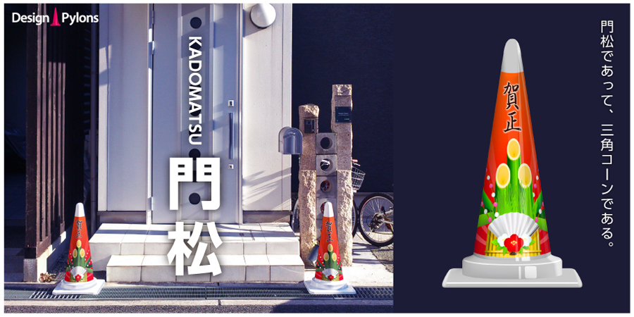 株式会社アドニック(本社:大阪市中央区、代表:藤田治)は、三角コーンにオリジナルプリントのシートをかぶせた新しい広告媒体のコーン「デザインパイロン」を使用し、門松の柄をプリントした商品「KADOMATSU【門松】」を開発、及び販売を開始しました。