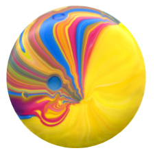 カラフルなマーブル模様は絵の具1滴のみをキャンバス上に垂らす事で創られています。この模様は日本文化の毬(まり)やあめ玉、ガラス玉等、ど こか懐かしい日本の雰囲気を持ちつつ、現代のカラフルでポップな作品です。