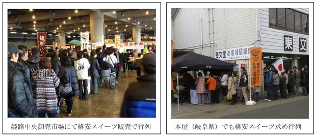 例えば、シャッター通りと化した商店街の空き場所や書店の前、魚市場、空港などです。周りから見ると、少し不思議な光景ですが、「神戸のスイーツが格安で買える」と多くのお客様が来られます。