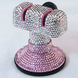 簡易研ぎ器全体をラインストーンで装飾を施した可愛らしさときらびやかさを合わせ持ち、現代の女性が好むデザインに仕立て上げました。パッケージは薄いピンクと紫のグラデーションにし、ラインストーンが映えるようにしました。