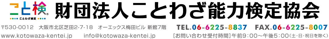 正式名称は「ことわざ能力検定協会」から「財団法人ことわざ能力検定協会」となります。