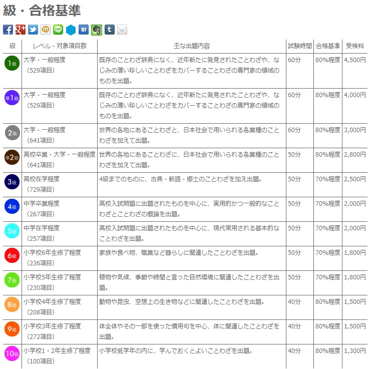 http://www.kotowaza-kentei.jp/grade/index.htmlをご覧ください。