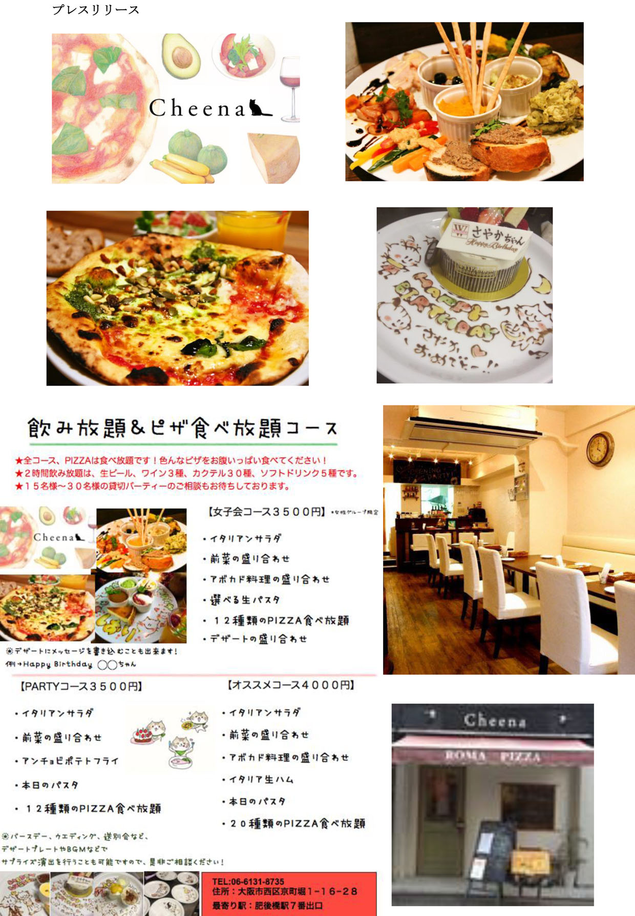 肥後橋駅徒歩5分の場所にある、ローマピッツァとイタリア家庭料理の小さなお店『 PIZZERIA Cheena(チーナ)』が2013年4月から『天然酵母ローマピッツァ食べ放題&飲み放題3500円コース』を始めました。