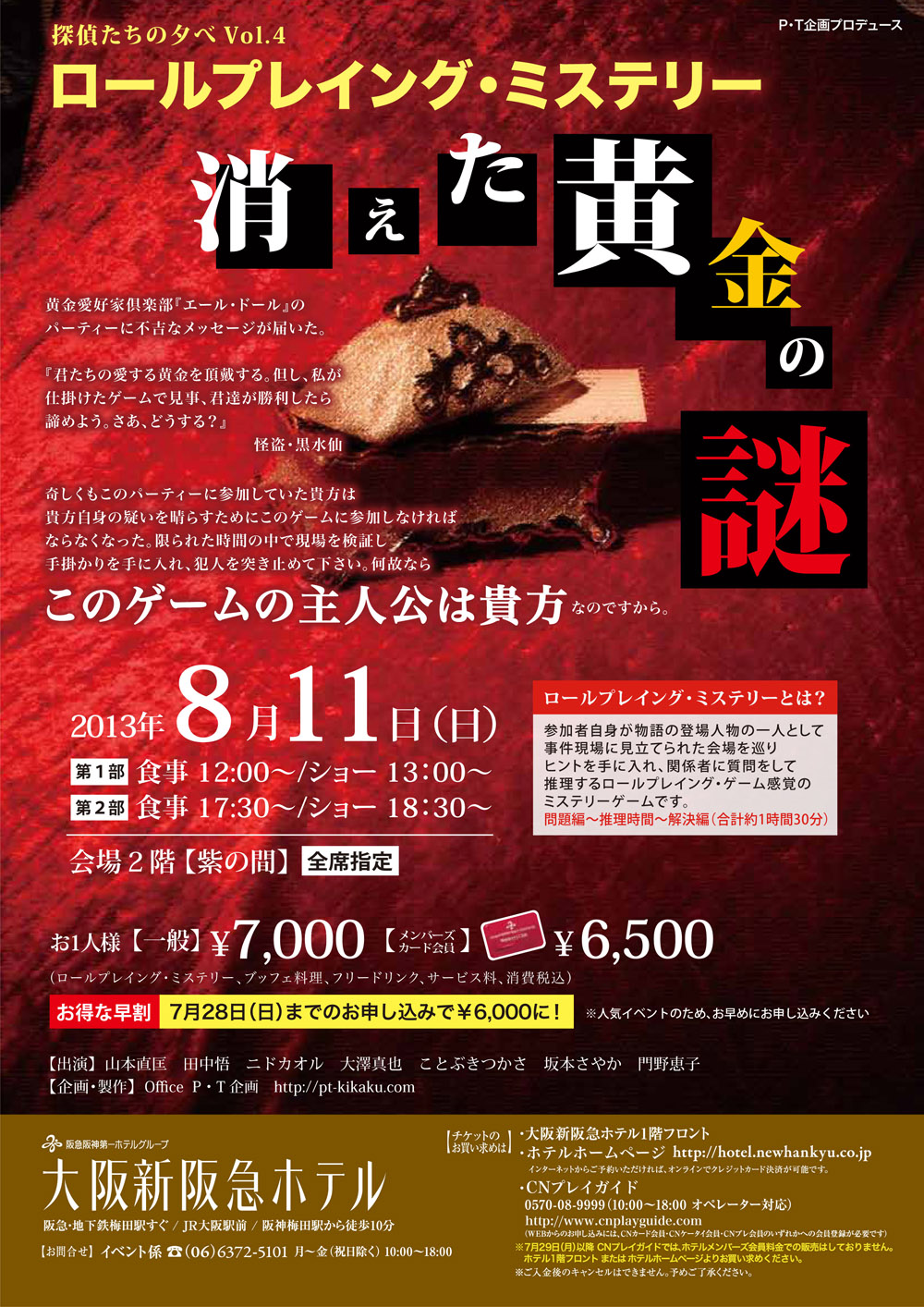 8/11(日) 探偵たちの夕べVol.4 ロールプレイング・ミステリー『消えた黄金の謎』