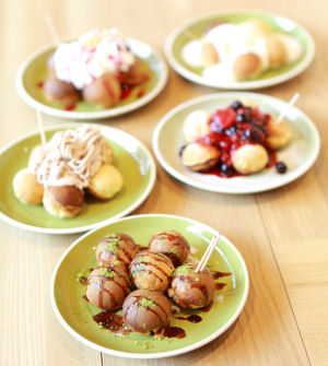 場所柄、小さなお子様連れの方も多いことから、「お子様でも食べやすく、切り分ける手間もないパンケーキを作りたい」と考えていたところ、たこ焼き器を使って焼くことを思いつきました。