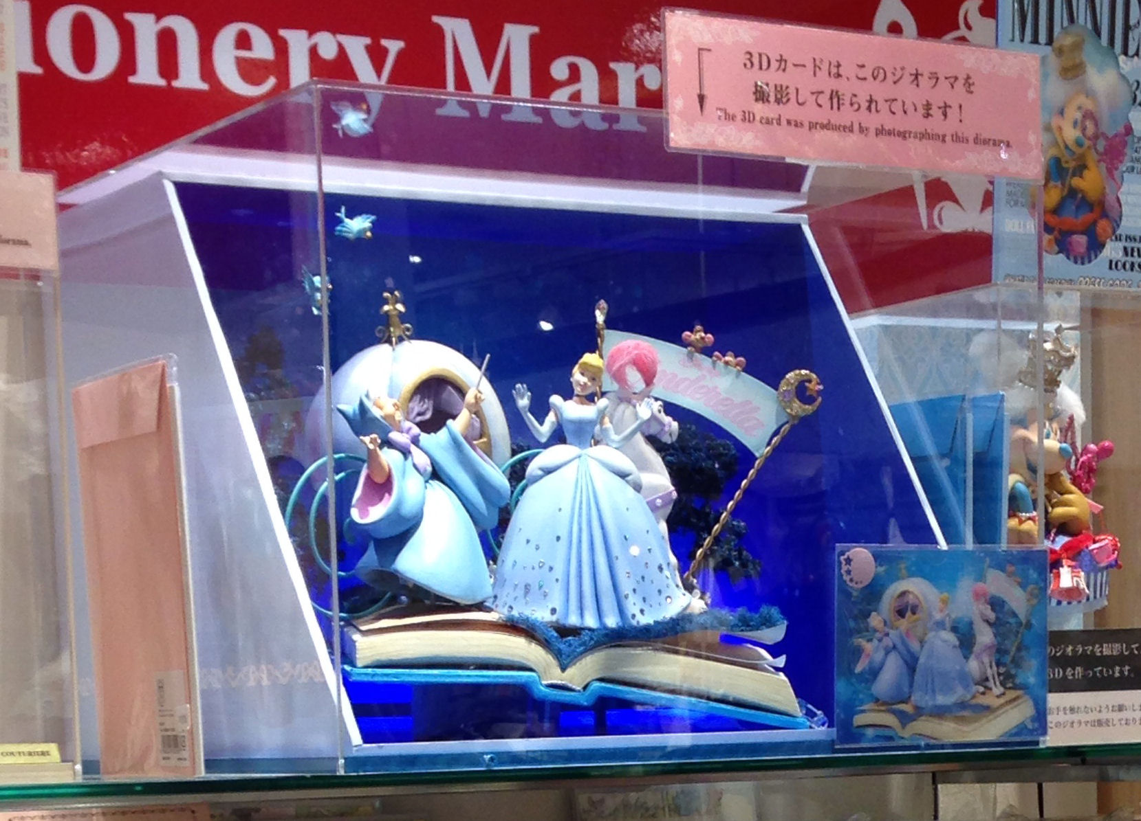 3Dカードの元となる女性に人気のディズニーのジオラマを特別展示するほか、大人が使えるキャラクターの手帳なども扱う。