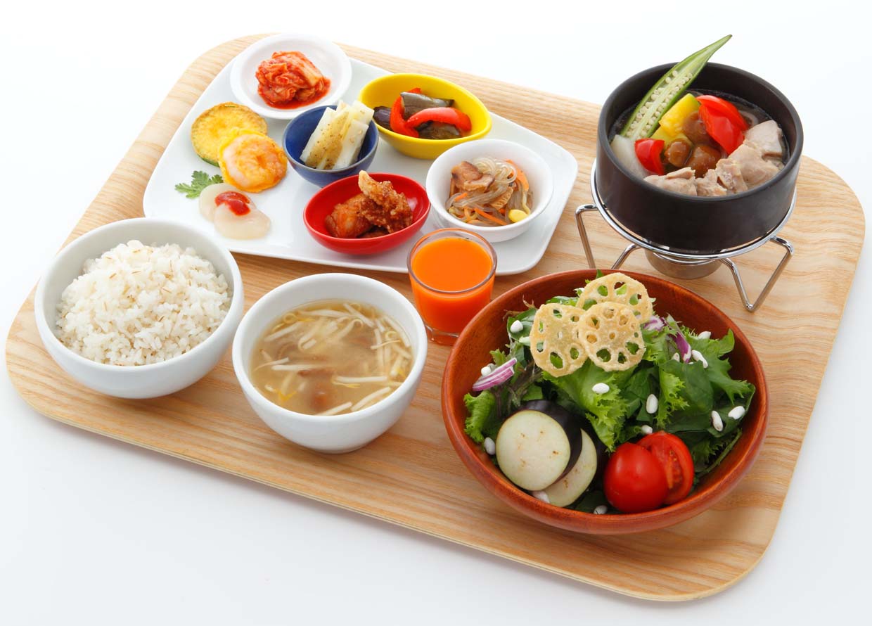 新メニュー「美と健康の野菜たっぷり韓国御膳」は、5つの味付け・5色の食材を基本とした、韓国の伝統的な食の教え「五味五色」に則り、ミッパンチャン(韓国惣菜)を中心にメニュー開発を致しました。