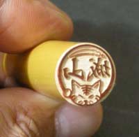 過去にお客様からのリクエストを受けて作ったデザイン(印面の隅からクマがこちらを伺っているようなデザインでした)が元になっていますが、その時点では商品化の考えはありませんでした。