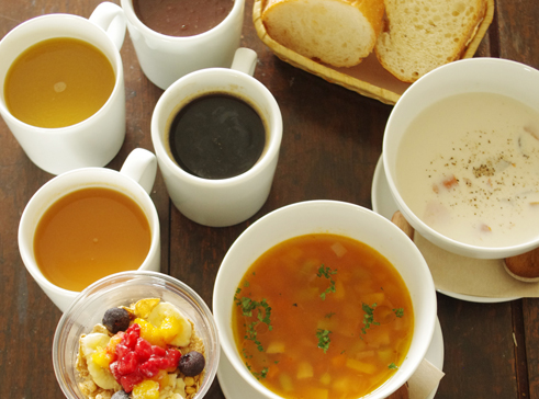 身体にやさしいごろごろ野菜たっぷりのスープや、豆からこだわったコーヒー。