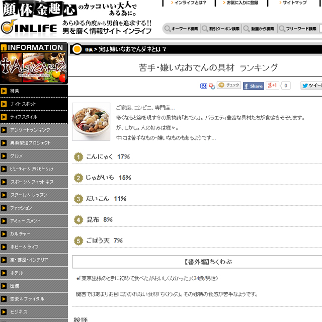 苦手・嫌いなおでんの具材 ベスト5 (発表元:INLIFE)