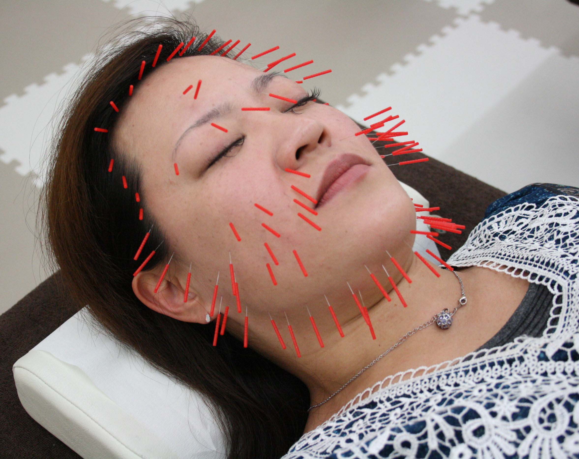 まるでハリセンボン!顔に鍼100本!