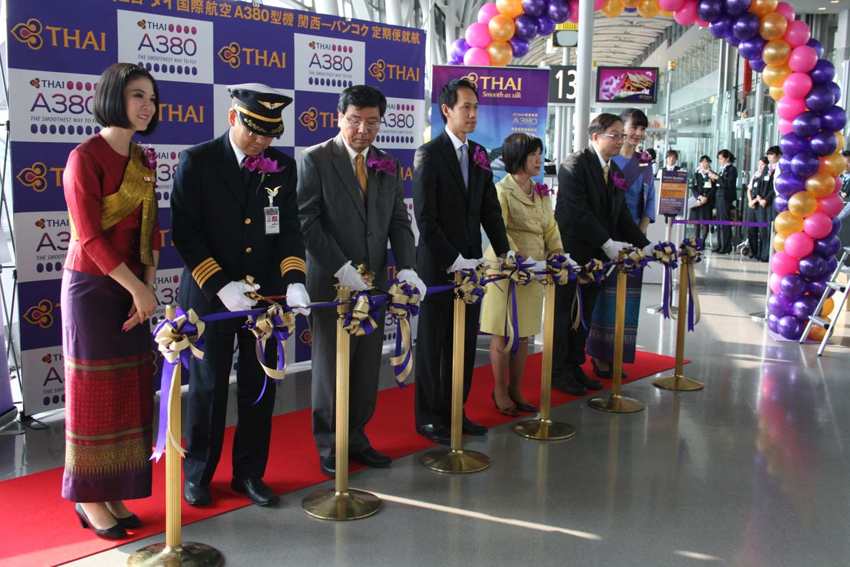 セレモニーの中でタイ国際航空 西日本地区総支配人 ナッタゴーン・チュンハチャー氏は「大阪はタイ国際航空にとって最も重要な路線のひとつであり、来年の2014年には 大阪就航50周年の節目の年を迎える今日、関西の歴史の一端を担う事を誇りに思います」と、エアバスA380にかける思いを語りました。