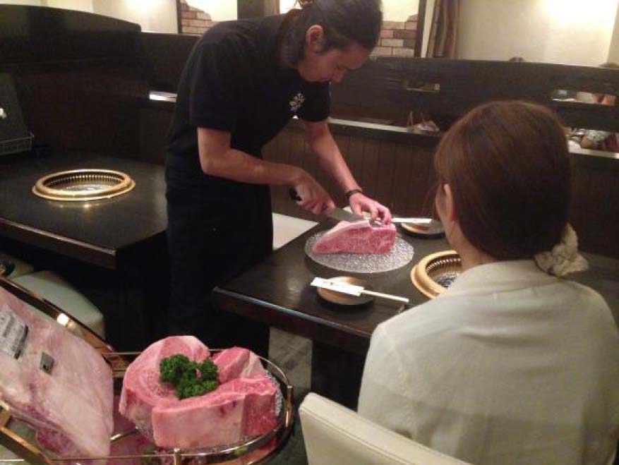 ■肉の塊がワゴンで登場!安心・安全のお肉を目の前で「ぶった切ります!」